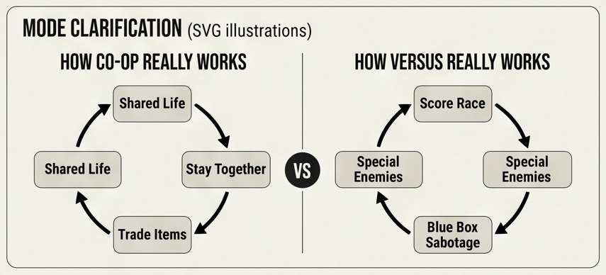 Pick a lane, generate a checklist, and get into a lobby. The original game is local-only; everything "online" today is a workaround built on local behavior.